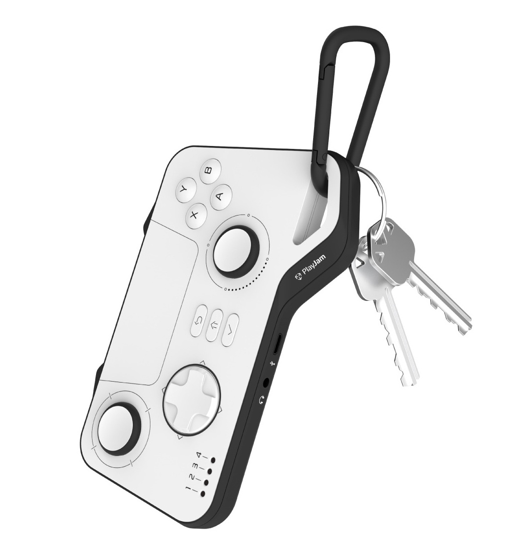 The form of the controller extends out at the corner, creating a unique silhouette. An integrated hole makes customization easy, and gives users the option to attach their controller to backpacks and straps when on the go.